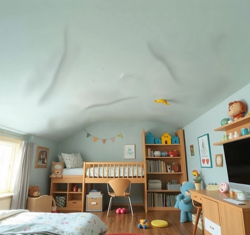 W krainie marzeń małej Zosi zwykły sufit zmienia się w gwiezdne niebo — to bajkowa metafora szybkiej, czystej metamorfozy wnętrza dzięki sufitowi napinanemu.
